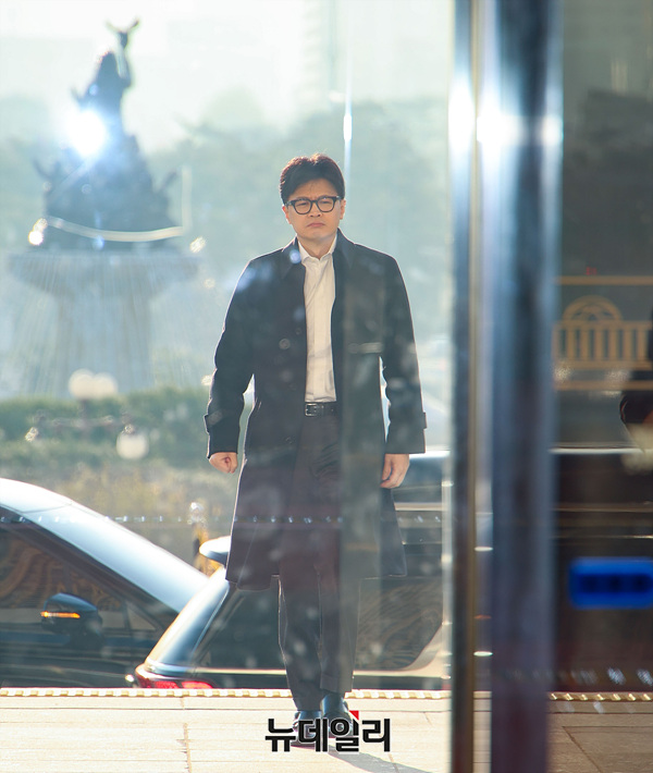 한동훈 국민의힘 대표가 10일 오전 서울 여의도 국회의사당에 도착해 당대표실로 향하고 있다.