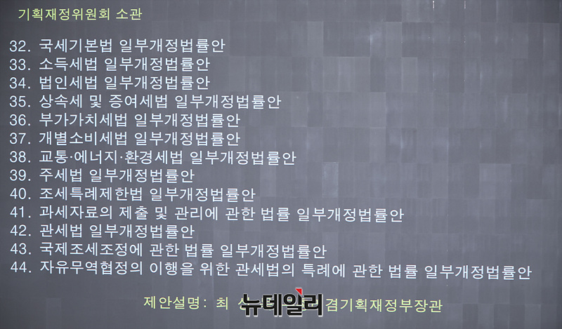 최상목 경제부총리 겸 기획재정부 장관이 10일 오후 서울 여의도 국회에서 열린 본회의에서 제안설명을 하고 있다.