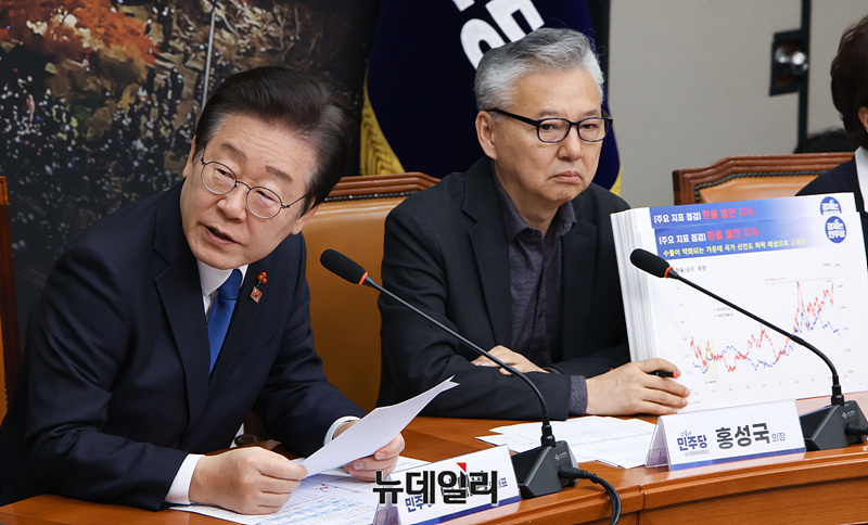 [포토] 비상경제점검회의, 인사말 하는 이재명 대표