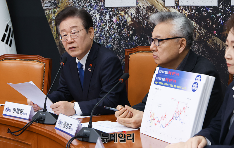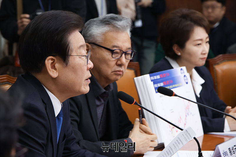 이재명 더불어민주당 대표가 11일 오전 서울 여의도 국회에서 열린 비상경제점검회의에서 인사말을 하고 있다.