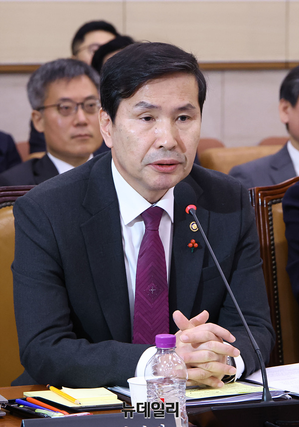 김선호 국방장관 직무대행이 11일 오전 서울 여의도 국회에서 열린 법제사법위원회 전체회의에서 의원들의 질의에 답하고 있다.