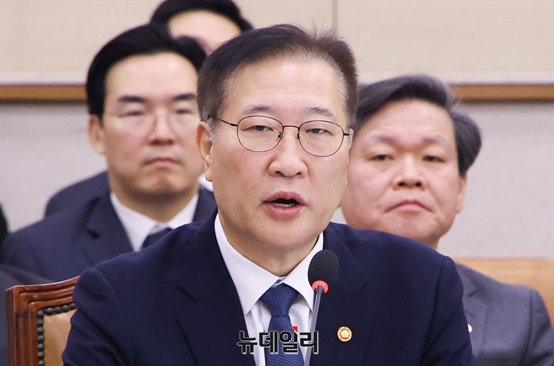 박성재 법무부 장관이 11일 오전 서울 여의도 국회에서 열린 법제사법위원회 전체회의에서 의원들의 질의에 답하고 있다.