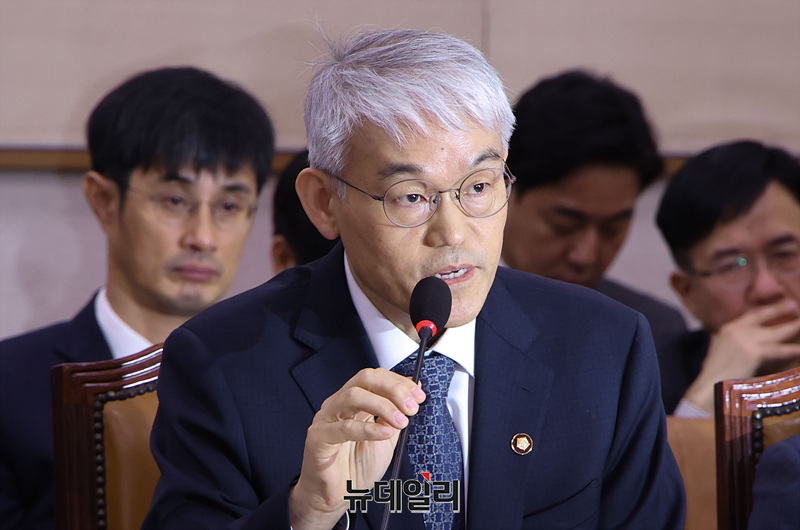 천대엽 대법원 행정처장이 11일 오전 서울 여의도 국회에서 열린 법제사법위원회 전체회의에서 의원들의 질의에 답하고 있다.