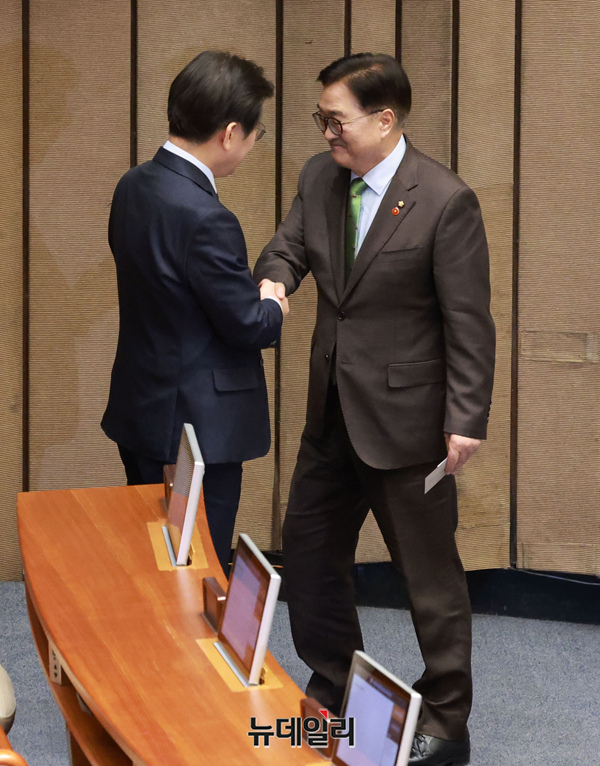 [포토] 악수하는 우원식 국회의장과 이재명 민주당 대표