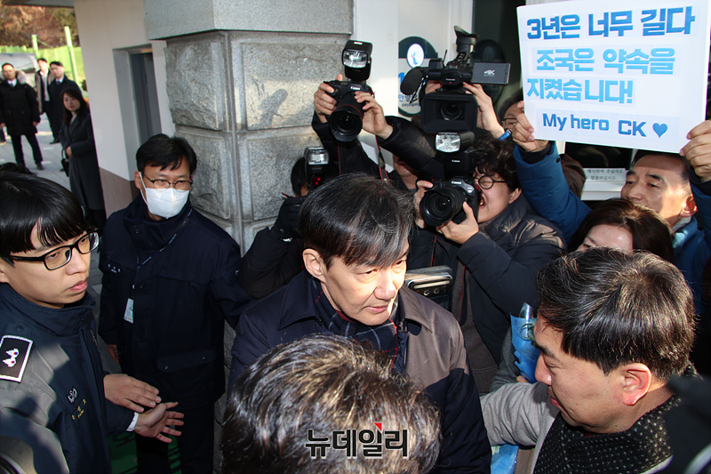 자녀 입시 비리와 청와대 감찰 무마 혐의로 대법원으로부터 징역 2년 실형을 확정받은 조국 전 조국혁신당 대표가 16일 오전 경기 의왕 서울구치소로 향하고 있다. (경기 의왕=서성진 기자)
