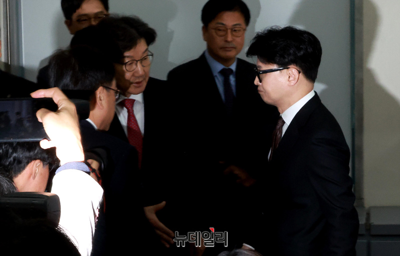 [포토] 권성동 원내대표 뒤로하고 떠나는 한동훈 대표