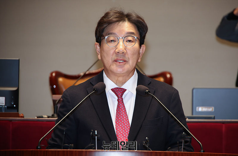 권성동 국민의힘 원내대표가 16일 오후 서울 여의도 국회에서 열린 의원총회에서 모두발언을 하고 있다.