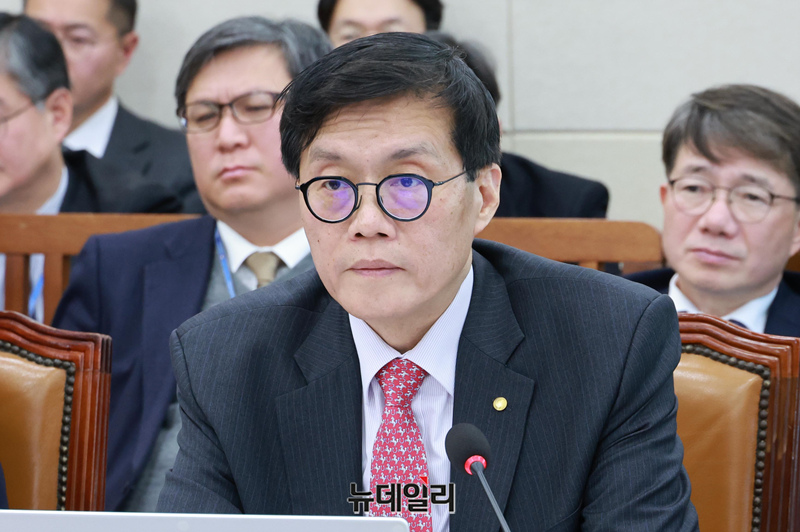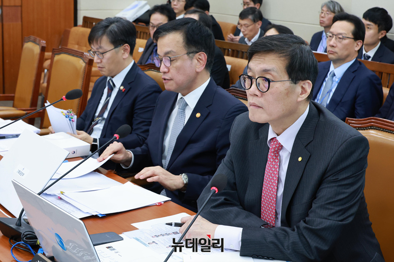 이창용 한국은행 총재가 17일 국회에서 열린 기획재정위원회 전체회의에 출석해 의원들의 질의에 답하고 있다.
