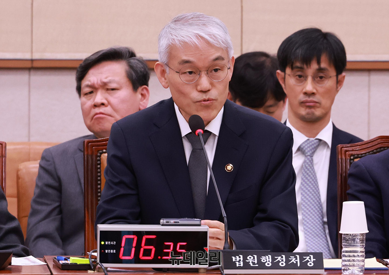 천대엽 법원행정처장이 17일 오후 국회에서 열린 법제사법위원회의 12.3 비상계엄 사태 현안질의에서 의원 질의에 답변하고 있다.