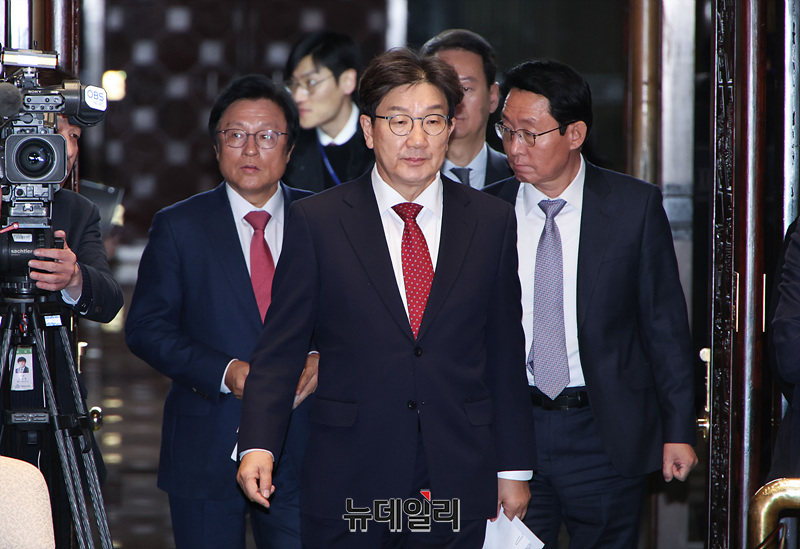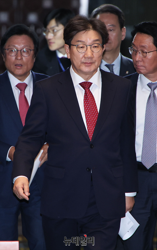 권성동 국민의힘 당대표 권한대행 겸 원내대표가 18일 오후 서울 여의도 국회에서 열린 의원총회에 참석하고 있다.