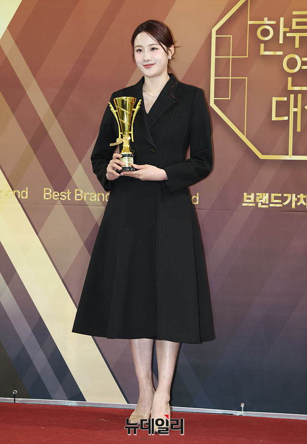 미스코리아 이재원이 22일 오후 서울 여의도 국회 의원회관에서 열린 '2024 대한민국 베스트브랜드 어워즈-대한민국 한류연예대상' 포토월에서 포즈를 취하고 있다.