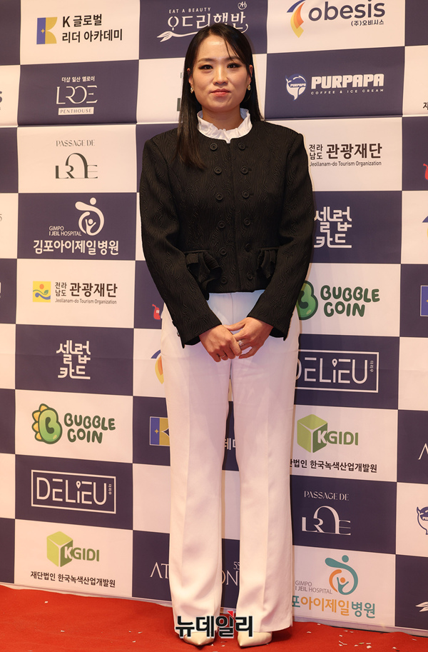 정지선 셰프가 23일 오후 서울 강남구 엘리에나 호텔에서 열린 '제13회 대한민국을 빛낸 10인 대상 시상식'에서 포즈를 취하고 있다.