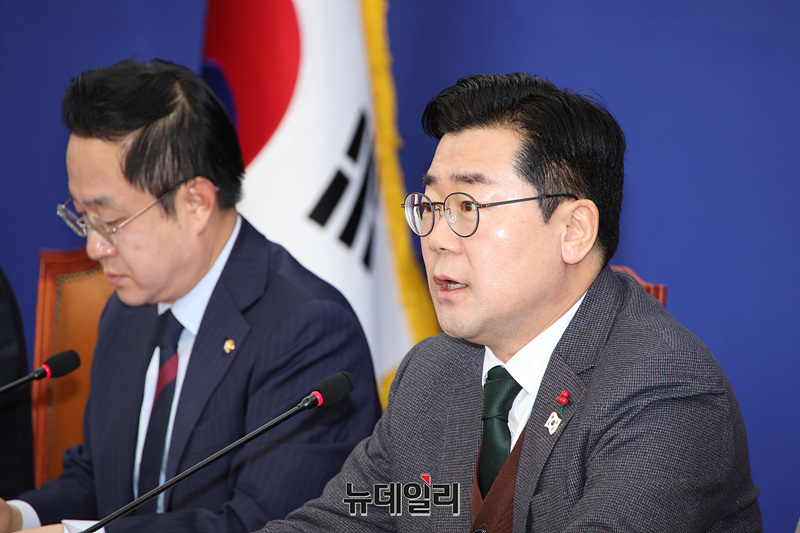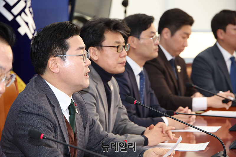 박찬대 더불어민주당 원내대표가 24일 오전 서울 여의도 국회에서 열린 원내대책회의에서 모두발언을 하고 있다.