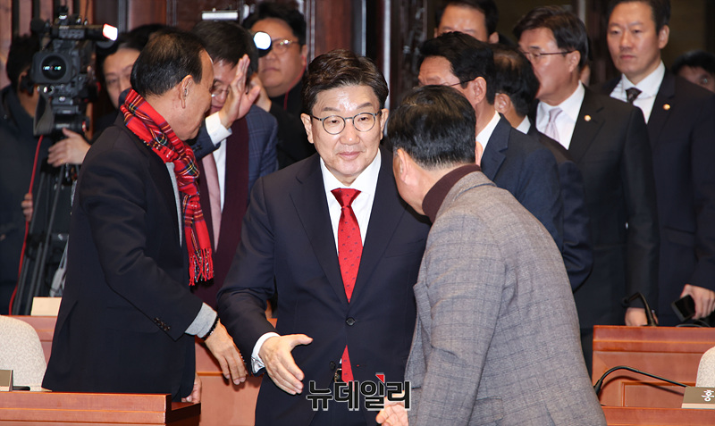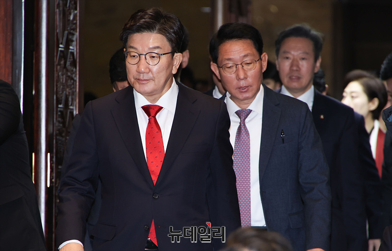 권성동 국민의힘 당대표 권한대행 겸 원내대표가 24일 오전 서울 여의도 국회에서 열린 의원총회에 참석하고 있다.
