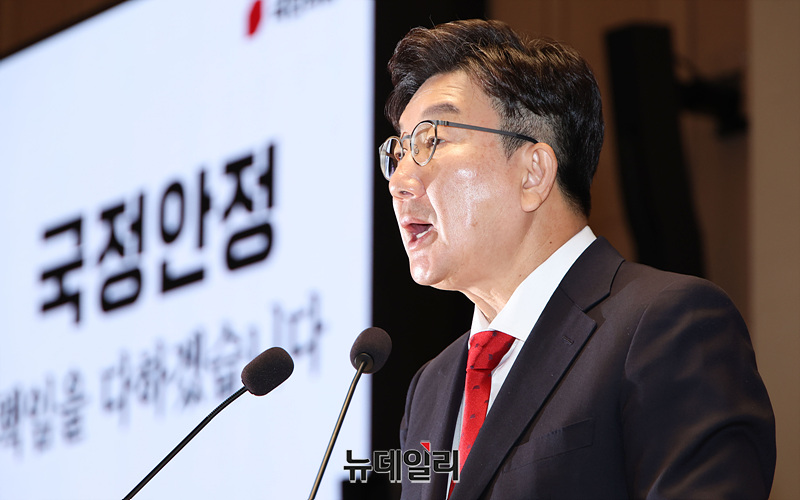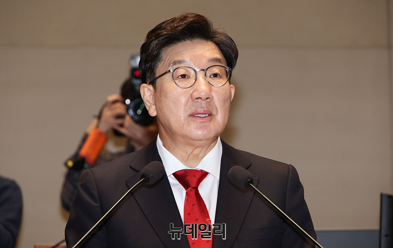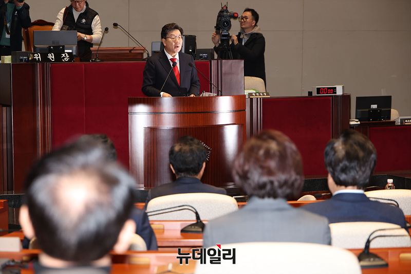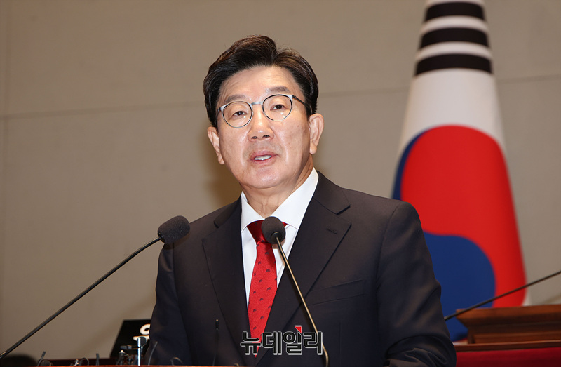 권성동 국민의힘 당대표 권한대행 겸 원내대표가 24일 오전 서울 여의도 국회에서 열린 의원총회에서 모두발언을 하고 있다.