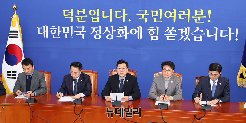 박찬대 더불어민주당 원내대표가 26일 오전 서울 여의도 국회에서 열린 정책조정회의에서 모두발언을 하고 있다.