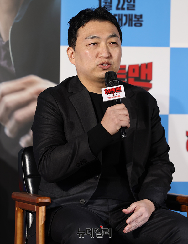 최원섭 영화감독이 27일 오전 서울 CGV용산아이파크몰에서 열린 영화 '히트맨2(감독 최원섭)' 제작보고회에서 인사말을 하고 있다.