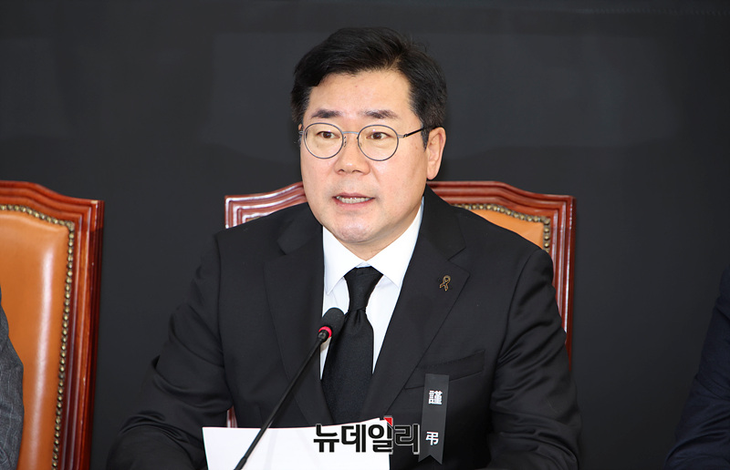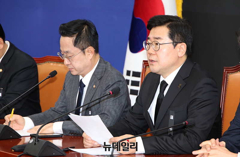 박찬대 더불어민주당 원내대표가 31일 오전 서울 여의도 국회에서 열린 원내대책회의에서 모두발언을 하고 있다.