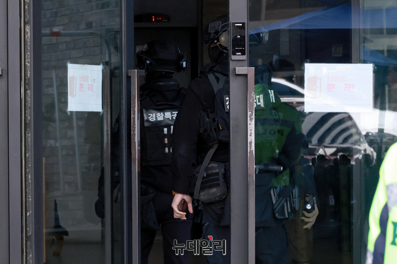 [포토] '국민의힘 당사 폭발물 설치 신고' 수색하는 경찰특공대