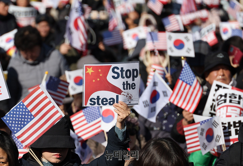 [포토] 한남동 관저앞 'STOP THE STEAL'