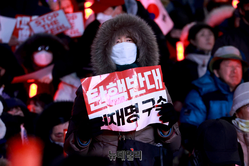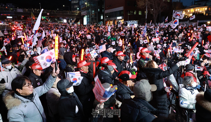 [포토] 밤까지 이어진 윤석열 대통령 탄핵 반대 집회