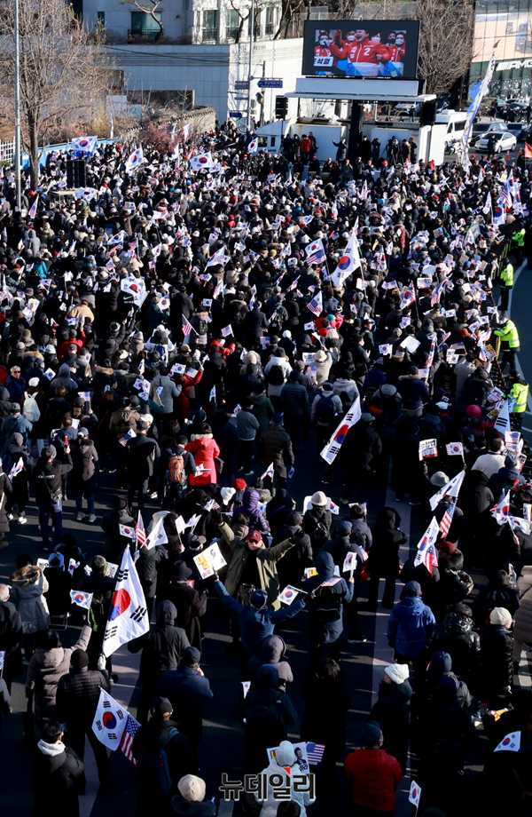 [포토] 대통령 관저 앞 가득 메운 윤 대통령 지지자들