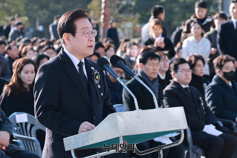 이재명 더불어민주당 대표가 3일 국회에서 엄수된 고 김수한 전 국회의장 국회장 영결식에 참석해 조사를 하고 있다.