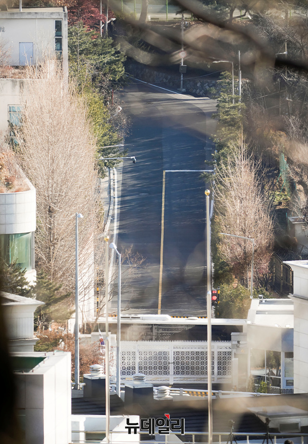 고위공직자범죄수사처가 윤석열 대통령 체포영장 집행을 시도중인 3일 서울 한남동 대통령 관저 입구가 버스로 가로막혀 있다.