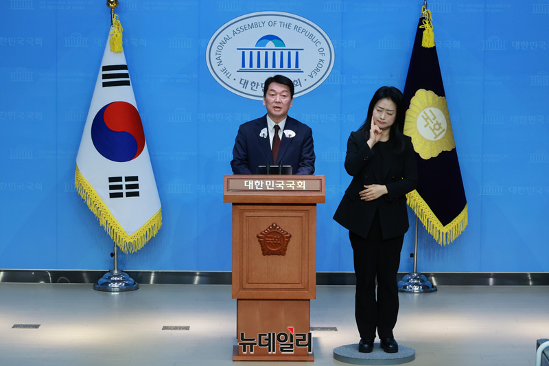 안철수 국민의힘 의원이 6일 오전 국회 소통관에서 열린 고위공직자범죄수사처의 윤석열 대통령 체포 영장 집행 업무 경찰 일임 및 현안 관련 기자회견에서 발언하고 있다.
