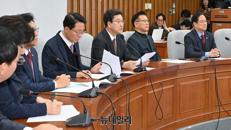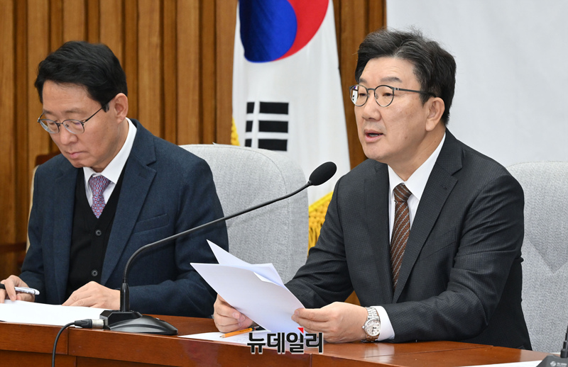 권성동 국민의힘 원내대표가 7일 오전 국회에서 열린 원내대책회의에서 모두발언을 하고 있다.