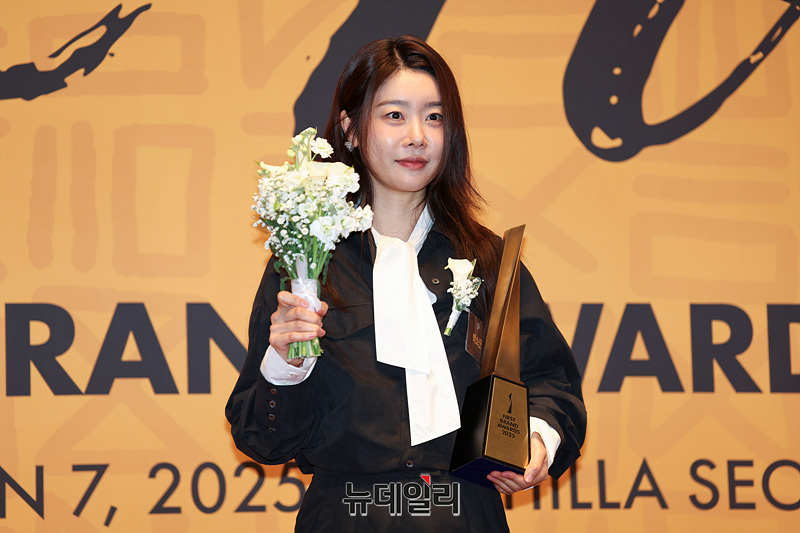 배우 박소진이 7일 오전 서울 중구 신라호텔에서 열린 '2025 대한민국 퍼스트브랜드 대상 시상식' 포토월에서 포즈를 취하고 있다.