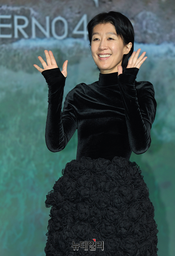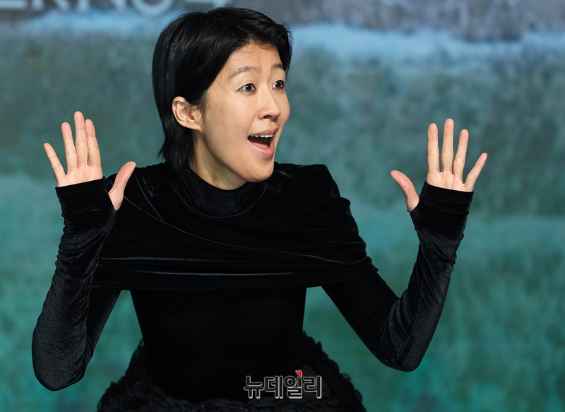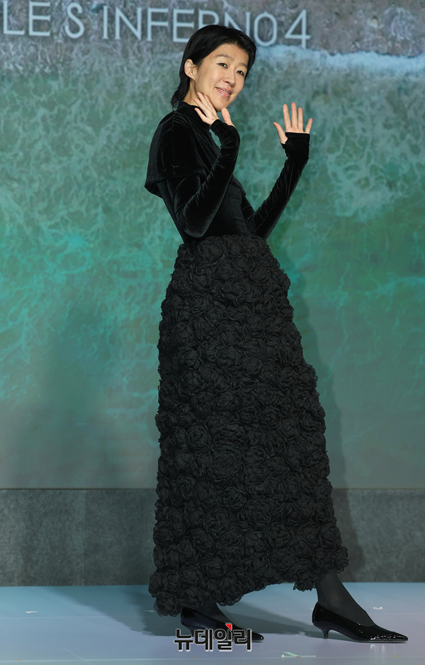 방송인 홍진경이 8일 오전 서울 마포구 호텔 나루에서 열린 넷플릭스 예능 '솔로지옥4' 제작보고회에서 포즈를 취하고 있다.