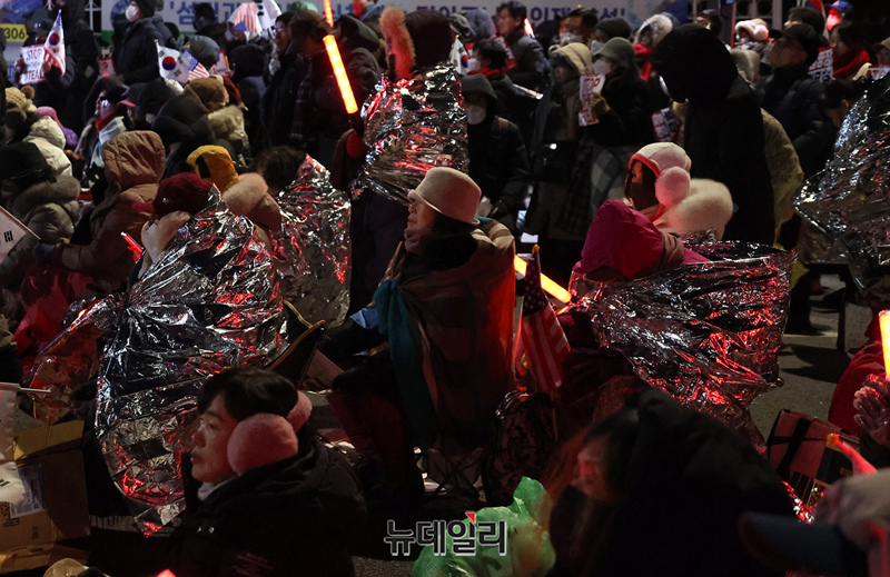 이날 집회 장소에는 곳곳에 푸드트럭이 등장해 어묵, 컵라면, 햄버거 츄러스 등을 시민들에게 제공했다. 영하권으로 급격하게 떨어진 날씨에도 관저를 지키며 밤샘집회를 이어갈 예정이다.