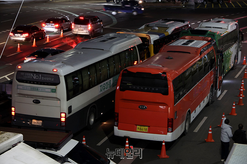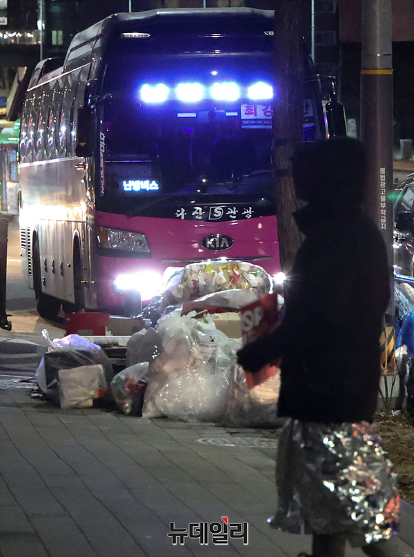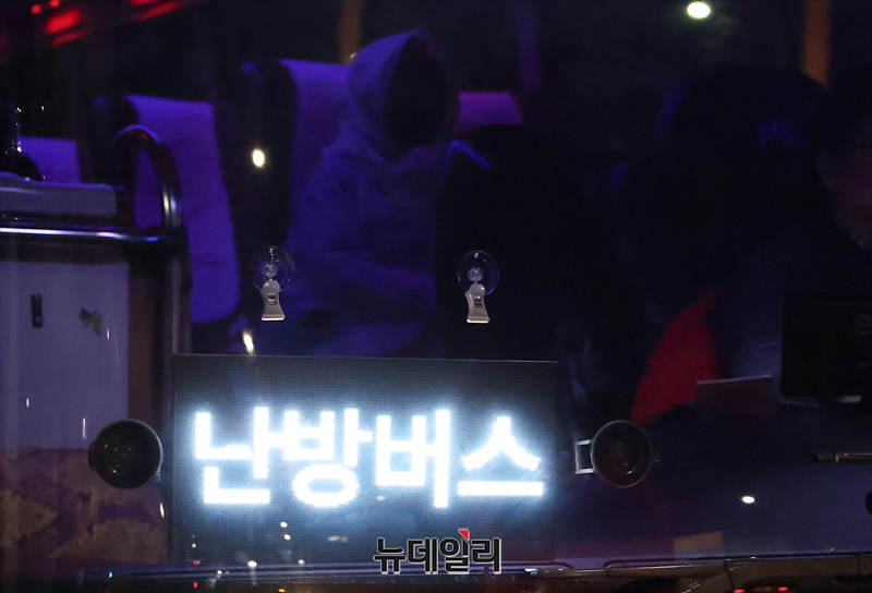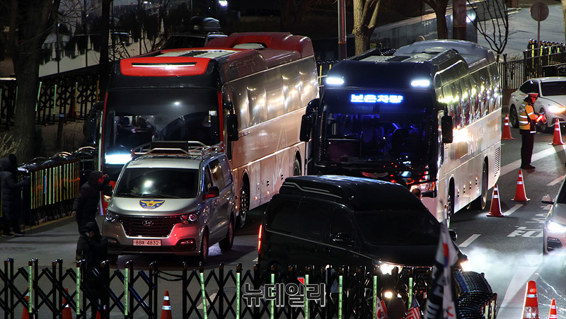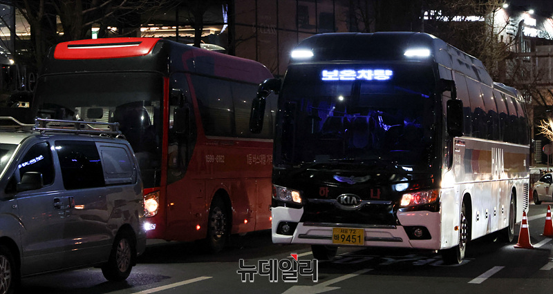 [포토] 한파주의보 새벽에 관저 앞 등장한 '난방버스'