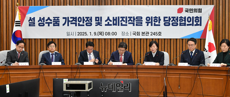 송미령 농림축산식품부 장관이 9일 국회에서 열린 설 성수품 가격안정 및 소비진작을 위한 당정협의회에 참석해 모두발언을 하고 있다.