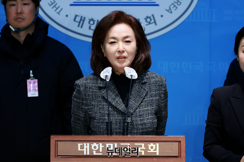 김민전 국민의힘 의원이 9일 국회 소통관에서 반공청년단 출범 기자회견에 앞서 소개 발언을 하고 있다.