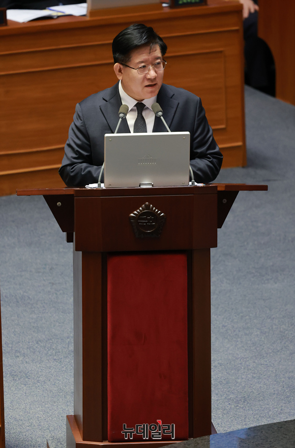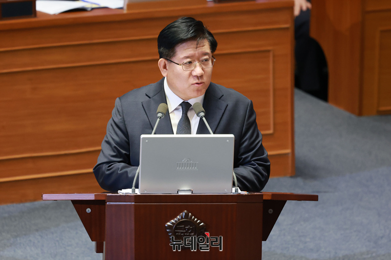 이호영 경찰청장 직무대행이 9일 국회에서 열린 본회의 윤석열 대통령 위헌적 비상계엄 선포 내란혐의 및 제주항공 여객기 참사 진상규명 관련 긴급현안질문에서 의원들의 질문에 답하고 있다.