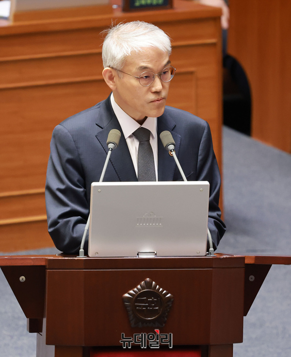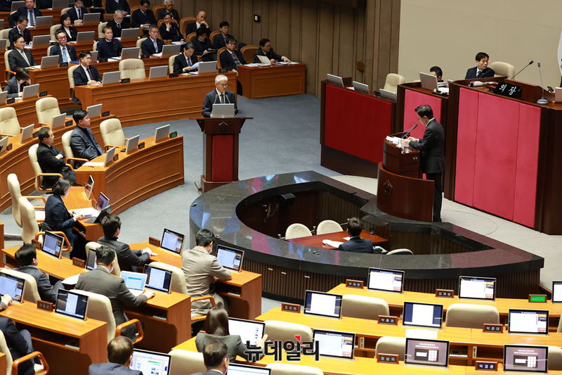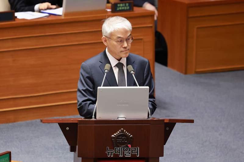 천대엽 법원행정처장이 9일 국회에서 열린 본회의 윤석열 대통령 위헌적 비상계엄 선포 내란혐의 및 제주항공 여객기 참사 진상규명 관련 긴급현안질문에서 의원들의 질문에 답하고 있다.