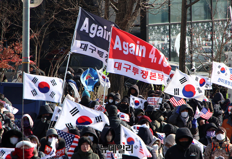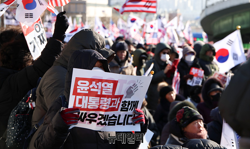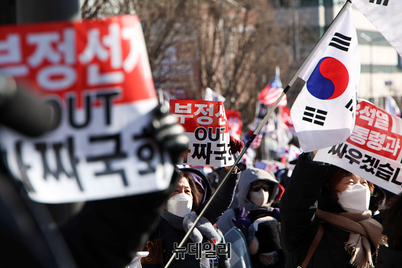 [포토] 최강 한파에도 이어지는 태극기 물결