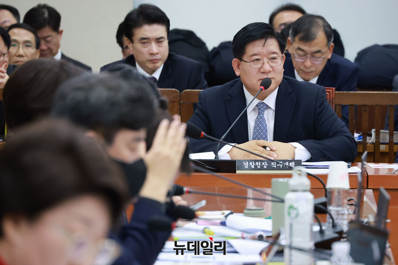 이호영 경찰청장 직무대행이 13일 오전 국회에서 열린 행정안전위원회 전체회의에서 현안질의에 답변하고 있다.