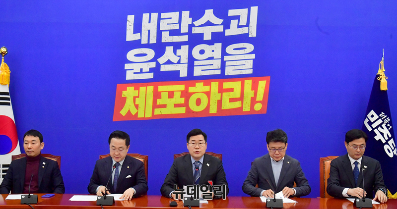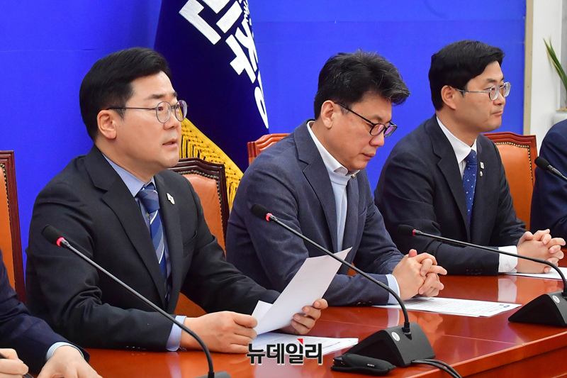 박찬대 더불어민주당 원내대표가 14일 오전 국회에서 열린 원내대책회의에 참석해 발언을 하고 있다.
