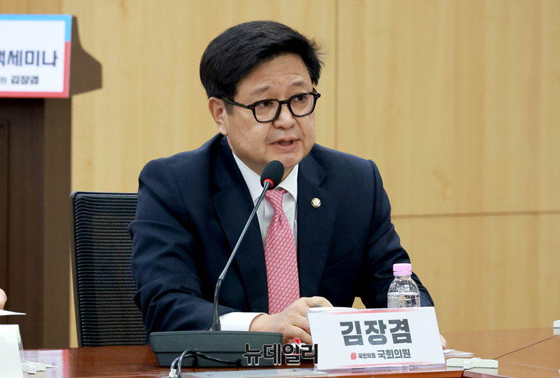 김장겸 국민의힘 의원이 14일 오전 국회 의원회관에서 열린 POST 제평위 시대의 포털뉴스 공정성 확보를 위한 정책세미나에서 인사말을 하고 있다.