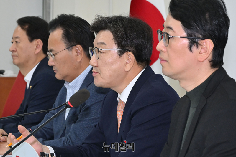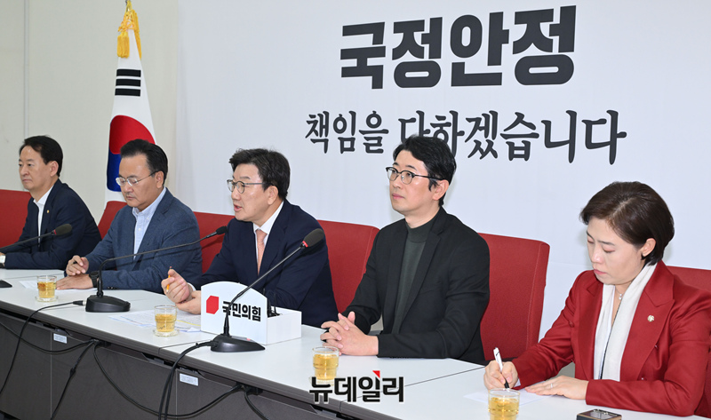 권성동 국민의힘 원내대표가 14일 국회에서 열린 현안 관련 기자간담회에서 발언을 하고 있다.이날 권 원내대표는 "우리 당은 위헌적 요소를 제거한 자체적인 비상계엄특검법을 발의하기로 했다"며 "민주당의 특검법은 위헌적 조항, 독소 조항이 너무 많은 악법이다. 무소불위의 특검법이 통과되는 것만은 반드시 막아야 한다"고 주장하며 "만일 민주당이 우리 당과 협상을 거부하고 특검법을 강행 처리한다면 즉시 최상목 권한대행에 재의요구권 행사를 요청하겠다"고 밝혔다.