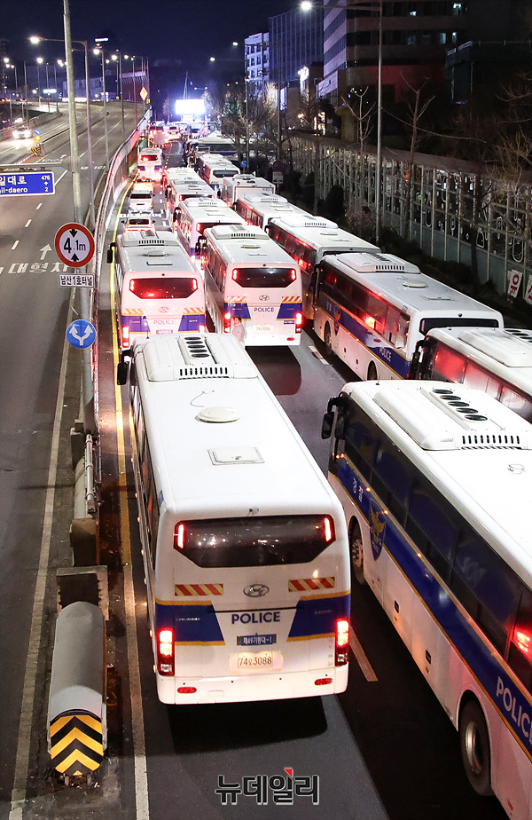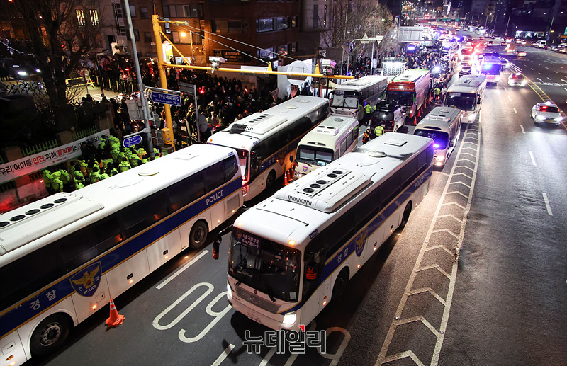 [포토] 관저 앞 늘어선 경찰기동대 버스