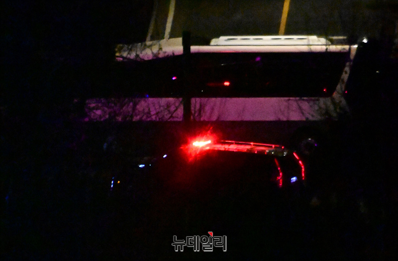 공수처의 윤석열 대통령 2차 체포영장 집행이 진행된 가운데 15일 새벽 서울 용산구 한남동 관저 3차 저지선 인근에서 공수처 차량과 경찰차량이 이동하고 있다.