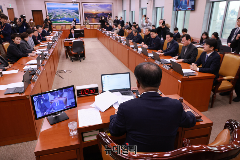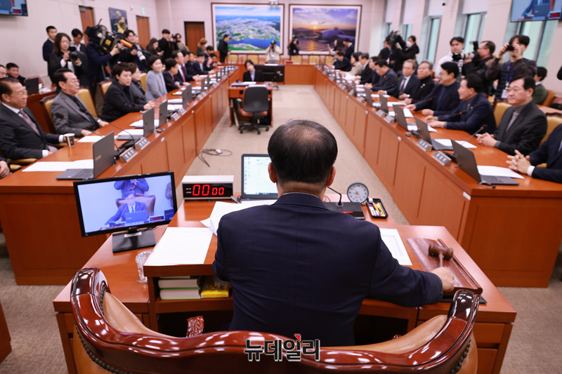 맹성규 국회 국토위원장이 16일 국회에서 12·29 여객기 참사 피해자와 유가족에 대한 2차 가해 방지 및 엄정 대처 촉구 결의안을 안건으로 열린 국토교통위원회 전체회의에서 법안을 의결하고 있다.
