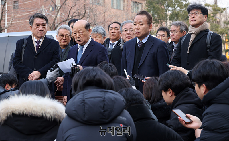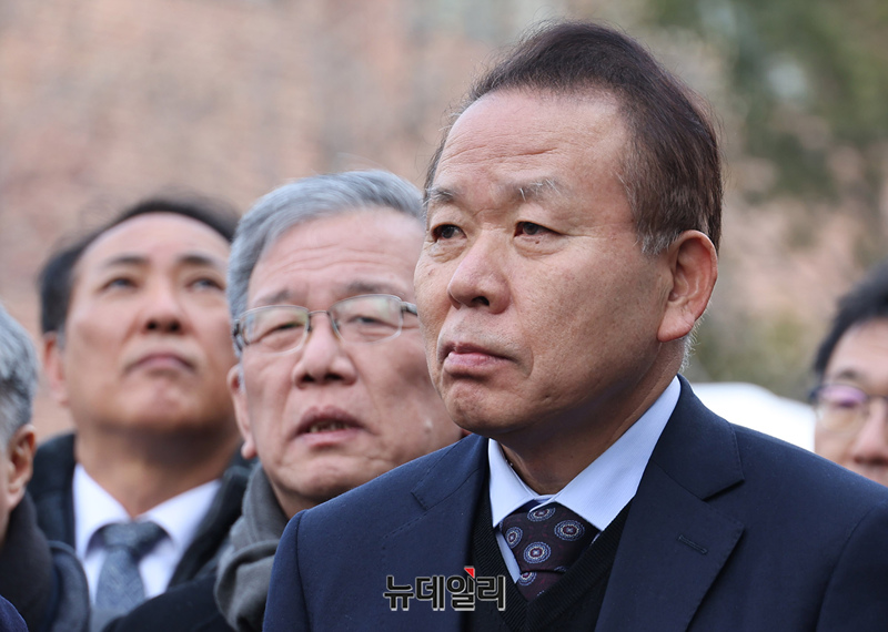 김이수 전 헌법재판관을 비롯한 국회측 변호인단이 대통령(윤석열) 탄핵심판 2차 변론기일인 16일 오후 서울 종로구 헌법재판소로 입장하고 있다.