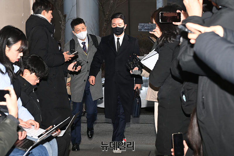 윤석열 대통령에 대한 체포영장 집행을 방해한 혐의를 받는 김성훈 대통령경호처 차장이 17일 오전 서울 서대문구 경찰 국가수사본부 특별수사단(특수단)에 조사를 받기 위해 출석하고 있다.