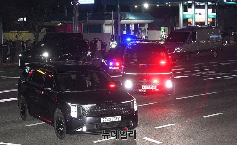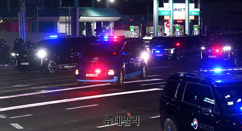 윤석열 대통령이 탑승한 차량 행렬이 18일 오후 경기 의왕시 서울구치소로 향해 이동하고 있다.