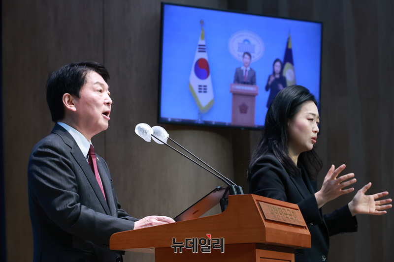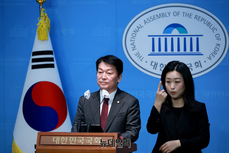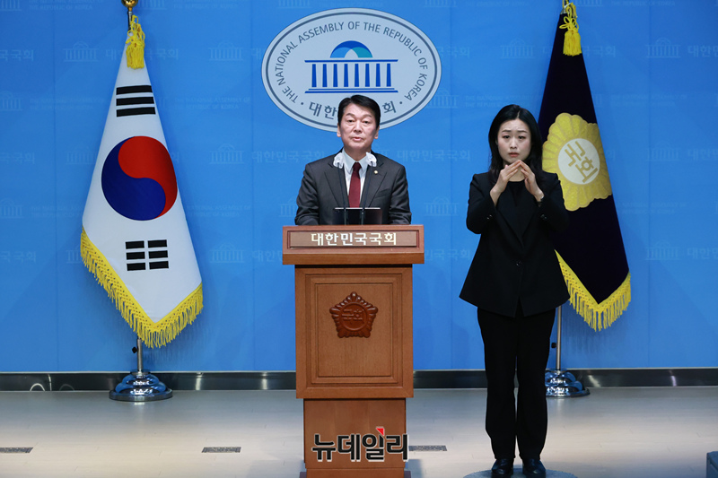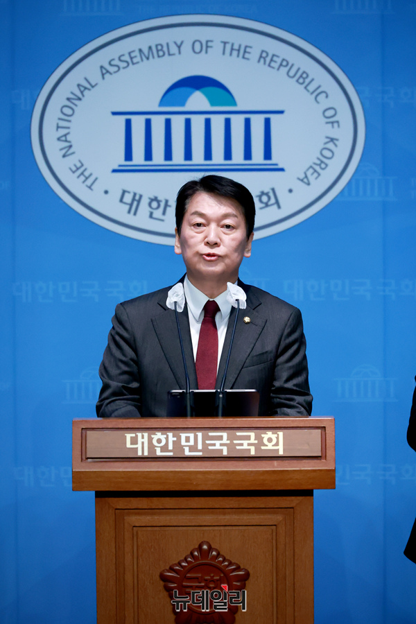 안철수 국민의힘 의원이 20일 오전 국회 소통관에서 '서부지법 폭력 난동' 현안 관련 기자회견을 하고 있다.